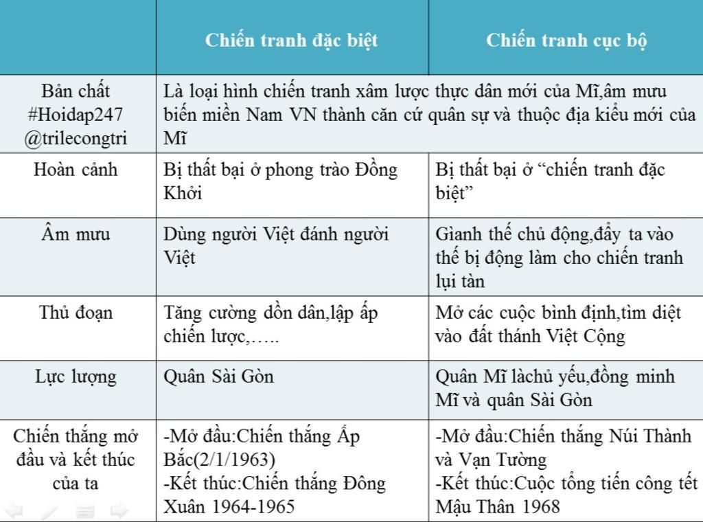 – Chiến lược “Chiến tranh đặc biệt”: Lực lượng chủ lực là quân đội Sài Gòn, có sự hỗ trợ của cố vấn quân sự Mỹ