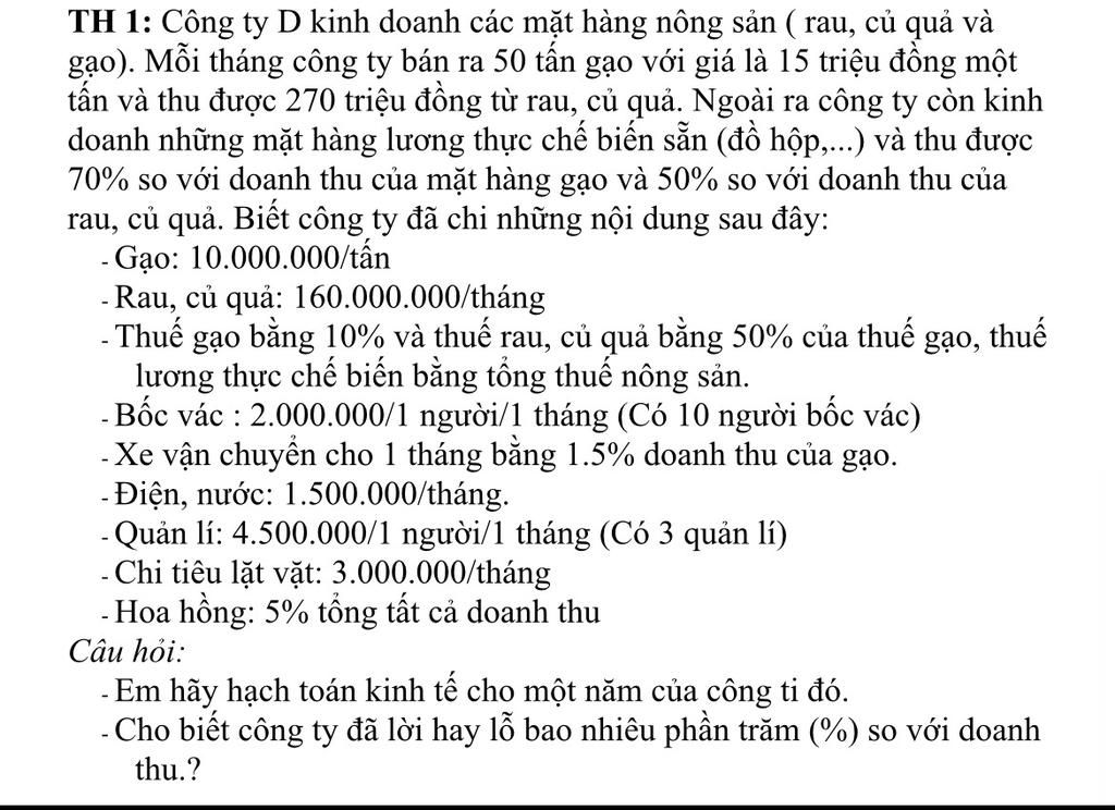 - Chi phí của 50 tấn gạo trong 1 tháng: