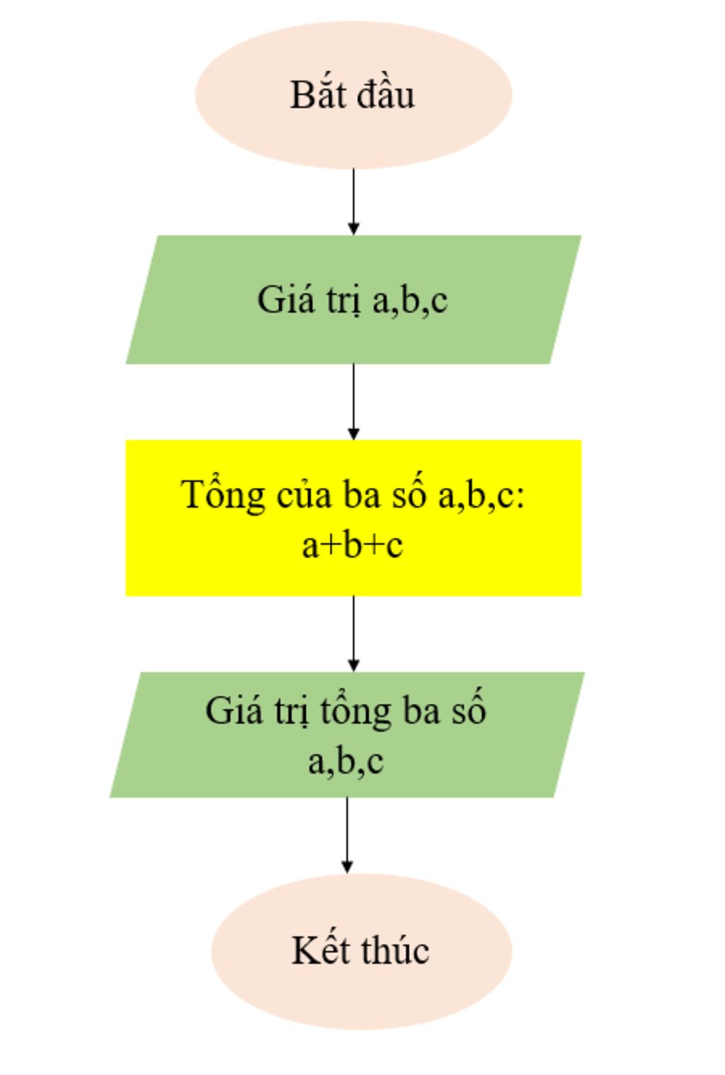 Mô tả thuật toán tính tổng ba số a,b,c bằng cách xử dụng sơ đồ khối ?