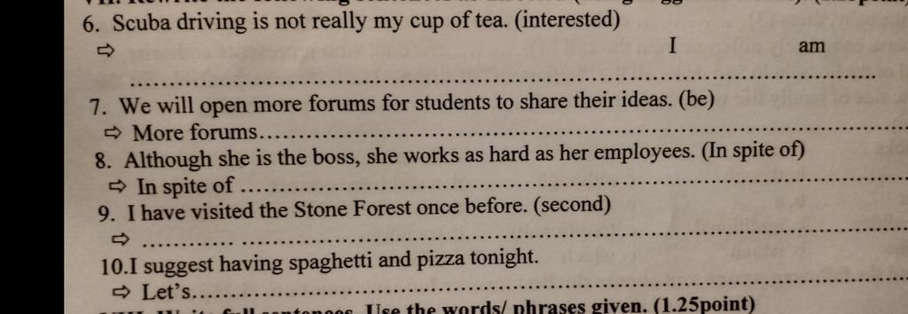 - suggest Ving: gợi ý làm gì -> Let's +V: Hãy làm gì-> lời gợi ý.