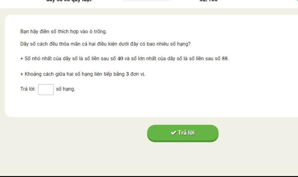 $\text{ Mà dãy khoảng cách giữa 2 số hạng liên tiếp là 3 nên:}$