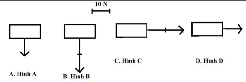 Hình biểu diễn lực hút của trái đất và một vật có khối lượng 1kg là hình A, vì vật Có khối lượng 1kg thì sẽ có lực hút của trái đất là 10 N.