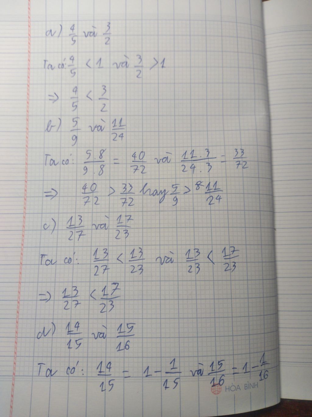 a) `4/5` và `3/2`