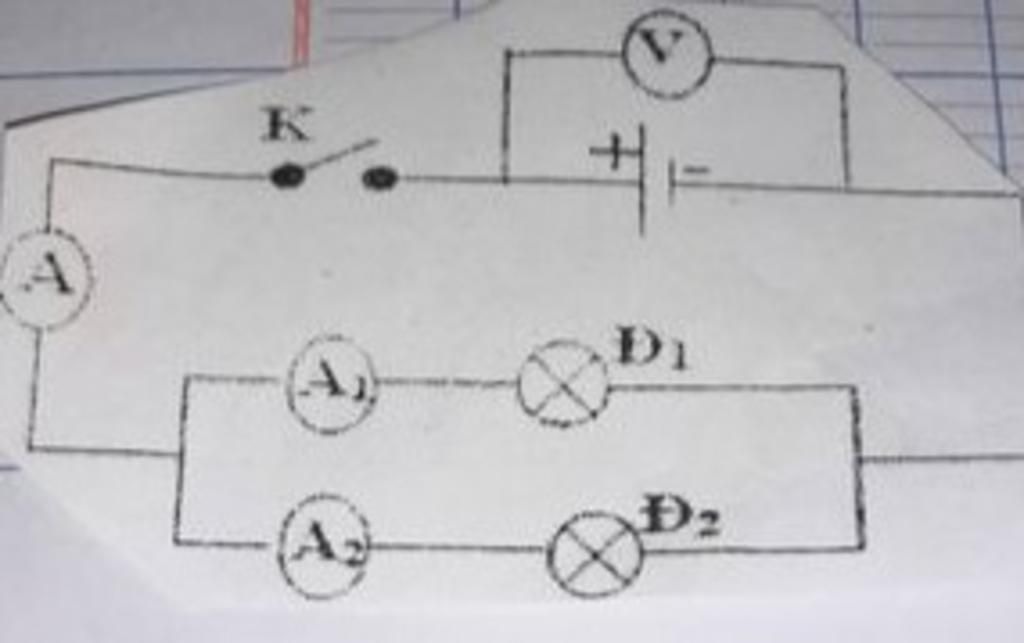 c) nếu đèn Đ1 hỏng thì ko có dòng điện chạy qua ampe kế A1 nên số chỉ ampe kế A1 là 0A