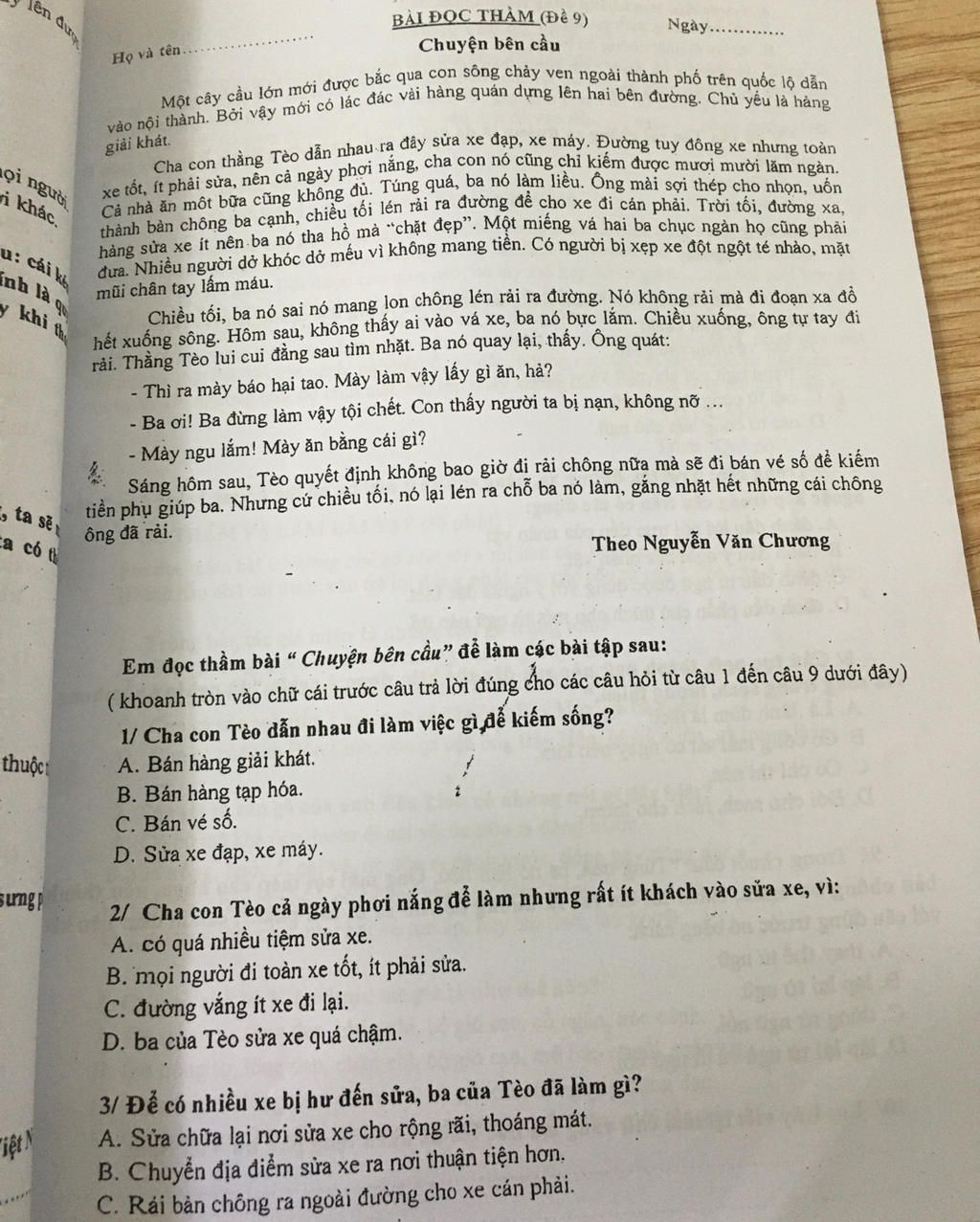 Câu 1 : Cha con tèo dẫn nhau đi sửa se đạp xe máy để kiếm sống