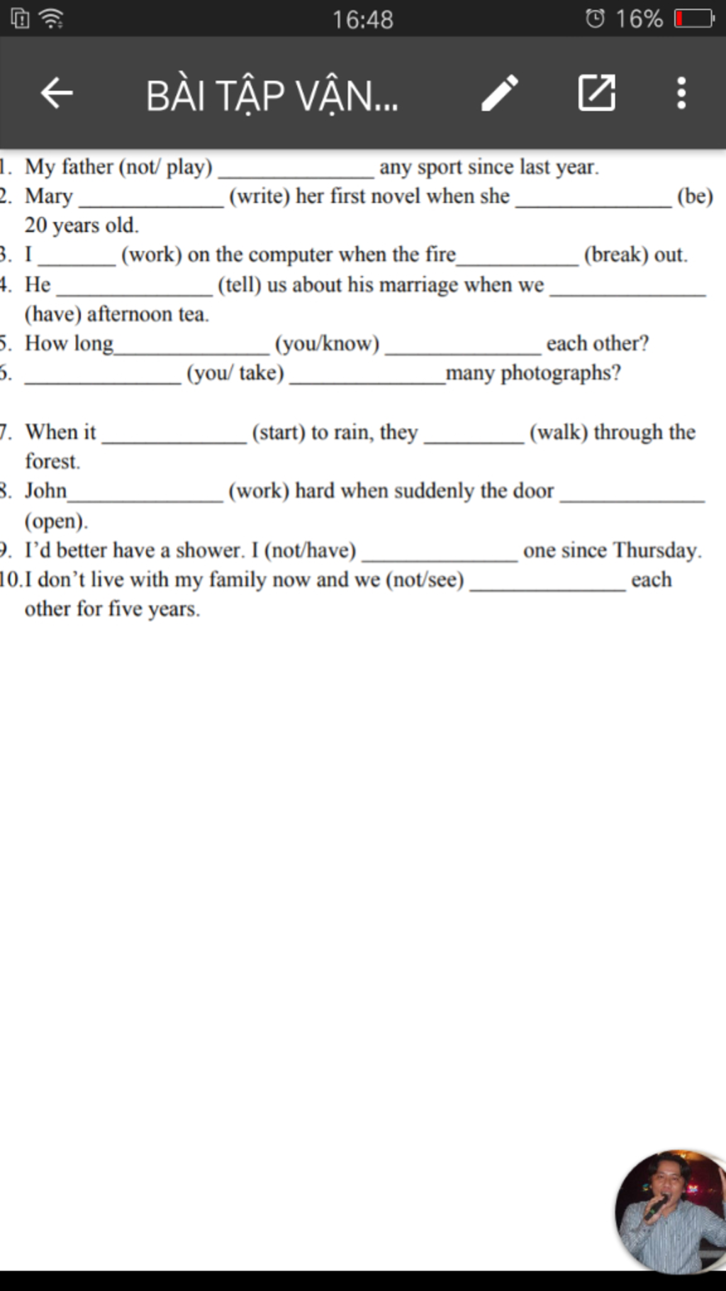 6)Have you taken ( cái này thì mình k chắc lắm)