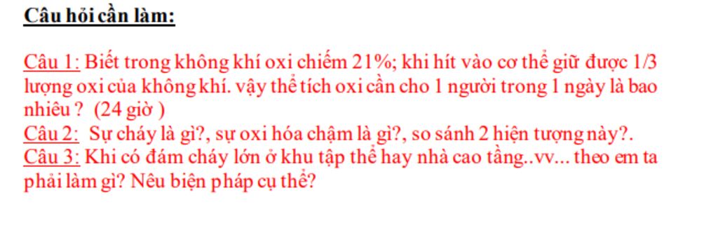 Thể tích oxi mỗi người cần trong 1 ngày là: