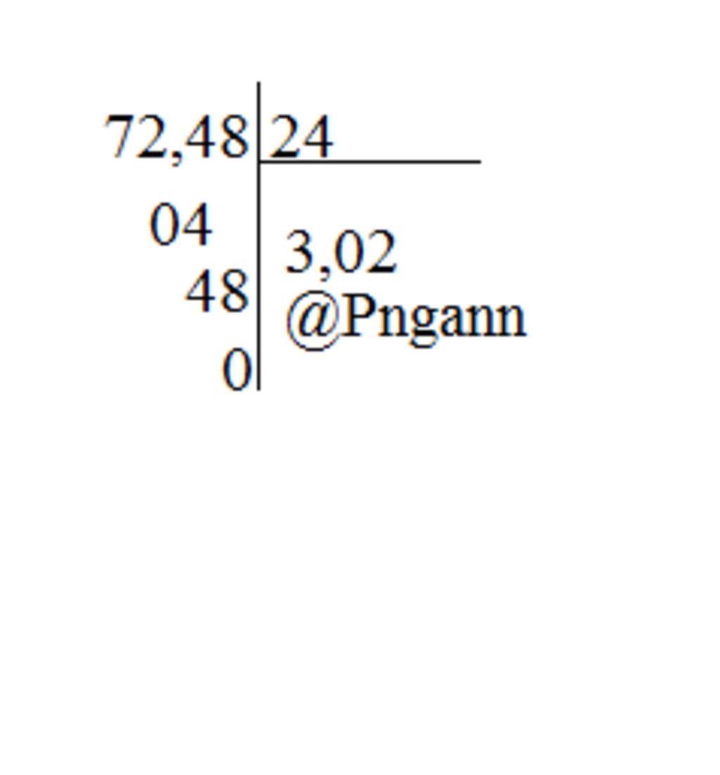`72,48 : 24 = 3,02`