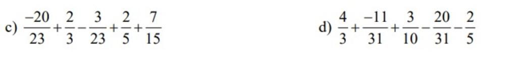 `d) 4/3 + (-11)/31 + 3/10 - 20/31 - 2/5`
