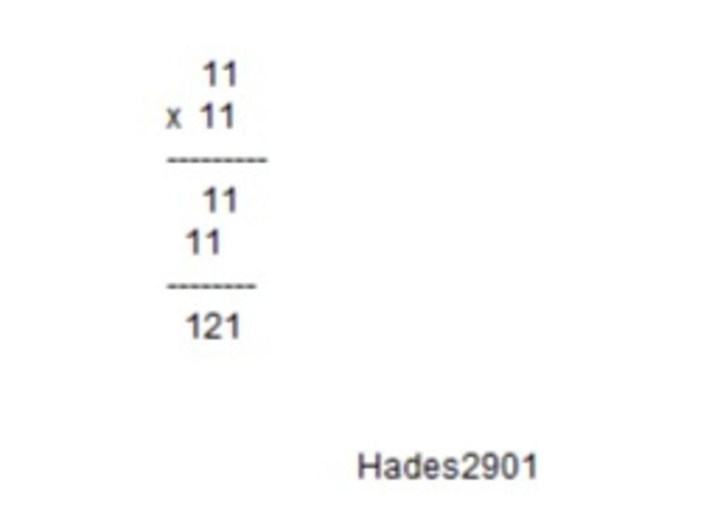 `=>` `11 xx 11 = 121`