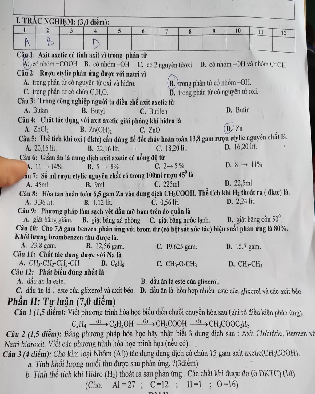 Câu 1: Axit axetic có tính axit vì trong phân tử