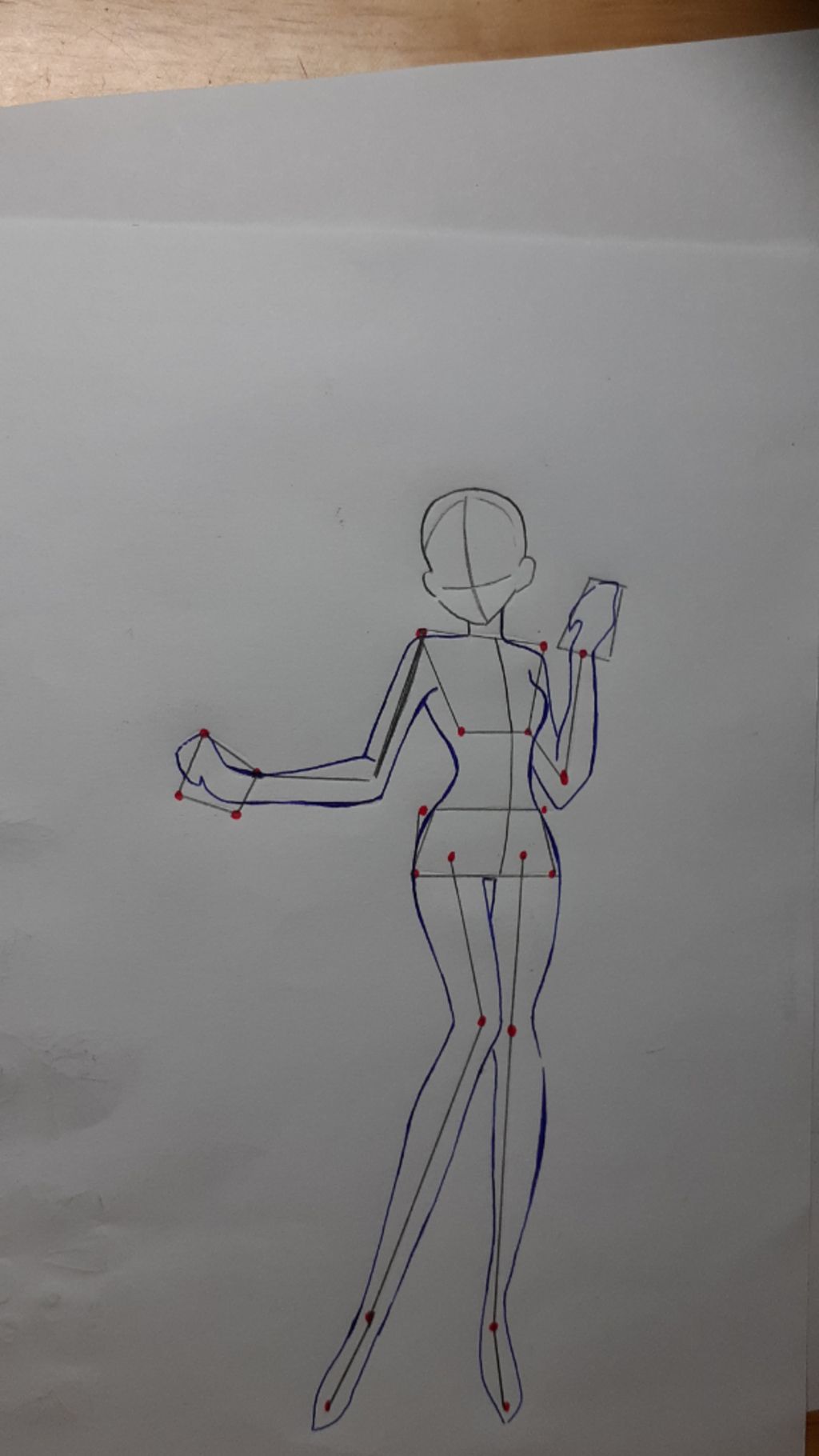 + Đầu tiên bạn vẽ một đường thẳng dài gần bằng toàn bộ cơ thể.