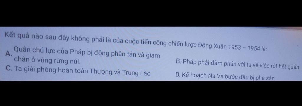 `->` Kết quả quân chủ lực của Pháp bị động phân tán và giam chân ỏ vùng rừng núi không phải là của cuộc tiến công chiến lược Đông Xuân 1953 – 1954 .