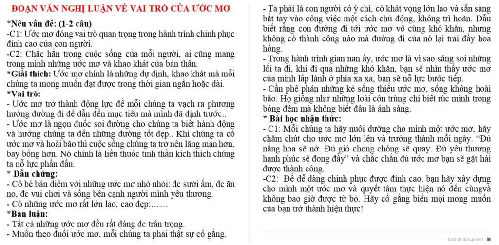 Mỗi con người chúng ta đều có những ước mơ, hoài bão riêng, không ai giống ai. Con người nếu sống mà không có đam mê và hoài bão cuộc sống sẽ trở nên vô vị, nhạt nhẽo. Khi đó chẳng ai còn động lực phấn đấu và ý chí vươn lên trong cuộc sống để đạt được mục tiêu mà mình mong muốn. Mỗi người trong chúng ta đều có ước muốn, dự định riêng có người mong muốn cuộc sống hạnh phúc, công việc ổn định, có người thích đi du lịch đây đó,.... Ước mơ và hoài bão là điều giúp cho cuộc sống ý nghĩa hơn, cuộc sống cần có niềm vui và cả những ước mơ, hai yếu tố luôn đi song hành với nhau. Một người có thể có nhiều ước mơ, có thể ước mơ trở thành sự thật và cả những ước mơ chỉ là mơ ước mà thôi. Nhưng chúng ta nên học cách cảm nhận và nuôi dưỡng nó, sau cùng là biến thành hiện thực. Muốn làm được điều đó mỗi chúng ta cần học hỏi thêm kiến thức và nền tảng giáo dục. Học cách kiên trì, nhẫn nại và nỗ lực để đi đến thành công. Tại sao phải kiên trì ? không thành công nào mà không trải qua thất bại, học cách kiên trì bạn sẽ đi đến thành công và ước mơ sẽ thành sự thật. Tất nhiên rằng cuộc sống không dễ để bạn để biến ước mơ thành hiện thực sẽ luôn có những vật cản trở ngại. Những ước mơ sẽ mãi chỉ là tên gọi nghĩa đen của nó nếu bạn không có ý chí và nỗ lực vượt qua. Không thành công nào mà chưa từng trải qua thất bại, từ các thất bại, vấp ngã sẽ hun đúc cho bạn ý chí, quyết tâm chinh phục đỉnh cao. Cuộc sống của bạn cho chính bạn quyết định, hãy tự mình viết nên một trang mới đầy tươi sáng bằng khả năng, động lực của bản thân. Cuộc sống có ước mơ, khát vọng thật thú vị, những ước mơ đó sẽ hiện diện trong tâm hồn mỗi người từng giờ và sẽ giúp cho mỗi chúng ta vững tin, mỗi người nếu làm được điều đó thì cuộc sống sẽ tràn ngập niềm vui, hạnh phúc. Sống có mục đích chắc chắn sẽ thú vị hơn những con người sống lay lắt qua ngày. Nếu bạn đang có trong mình những ấp ủ dự định riêng, hãy hành động ngay đừng để trôi hoài uổng phí theo năm tháng. Với các bạn học sinh đang còn ngồi ghế nhà trường hãy ra sức rèn luyện học tập tìm hiểu thêm kiến thức và tu dưỡng đạo đức để chuẩn bị hành trang chinh phục ước mơ trong tương lai không xa.