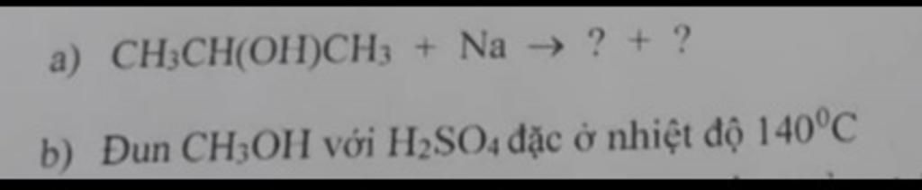 $b)2CH_3OH\xrightarrow{140^oC,H_2SO_{4(đ)}}CH_3OCH_3+H_2O$