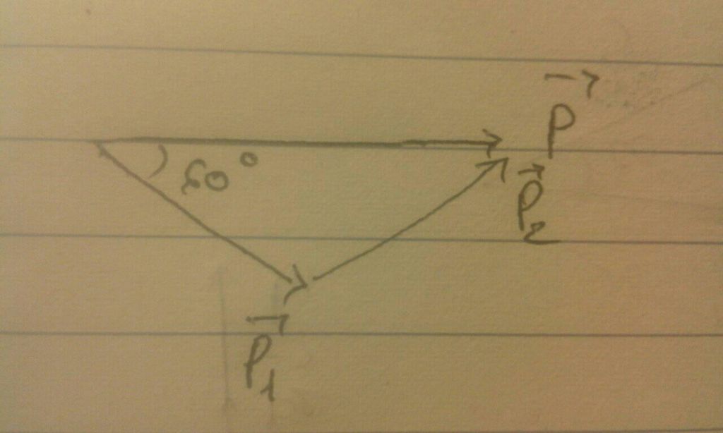 P2 = √(p^2 + p1^2 -2.p1.p2.cos60)
