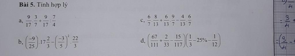 $= \dfrac{6}{17} . \dfrac{8}{13} +\dfrac{6}{7} . \dfrac{9}{13} - \dfrac{4}{13} . \dfrac{6}{7}$