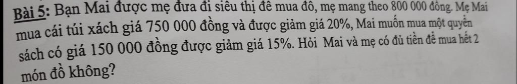 ⇒ mẹ mai có mang đủ tiền mua 2 món đồ đó