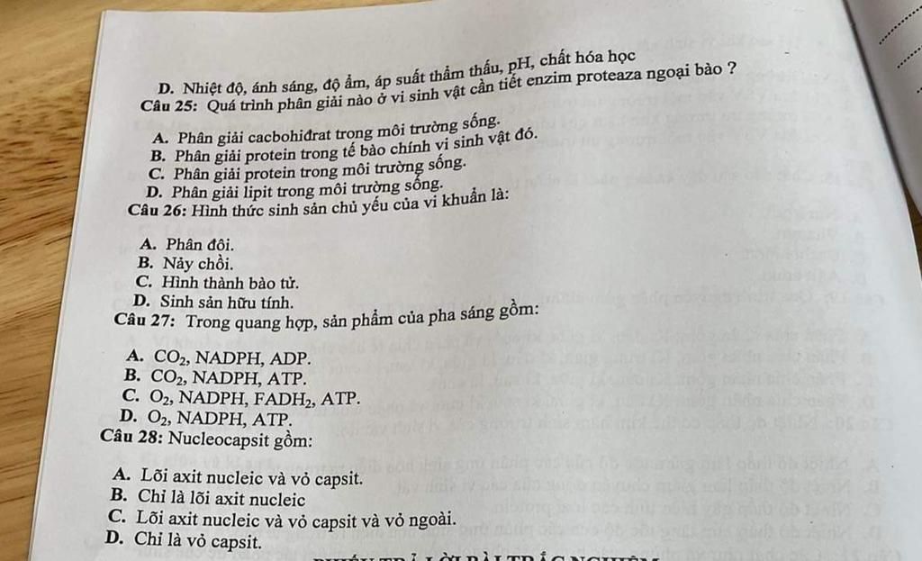 Trong quang hợp ,sản phẩm của pha sáng gồm : ATP , NADPH ,$O_2$