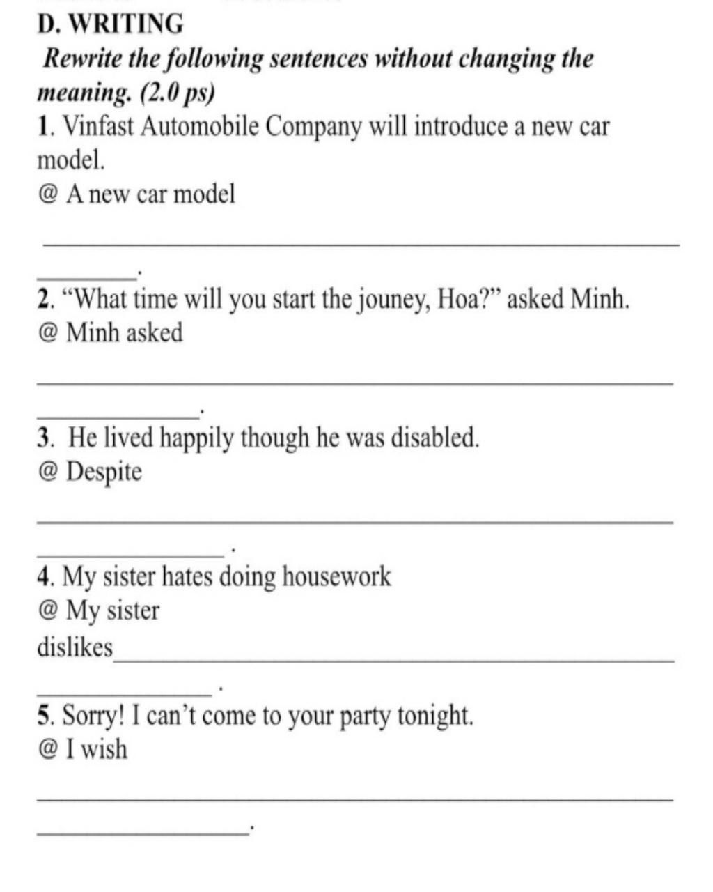 2. "What time will you start the jouney, Hoa?" asked Minh.