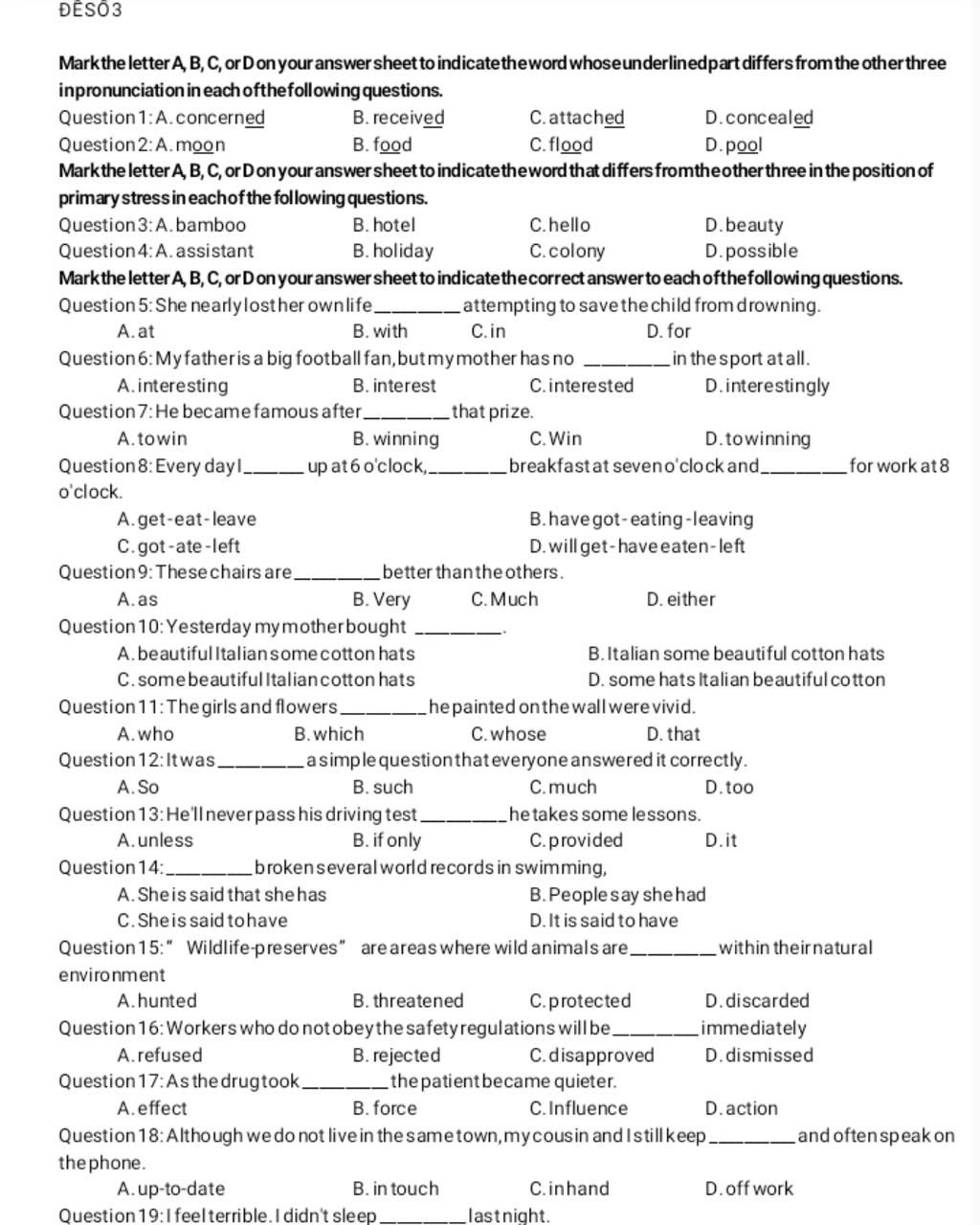 Markthe letter A, B, C, or Donyouranswer sheet to indicatetheword whoseunderlinedpart differs from the otherthree
