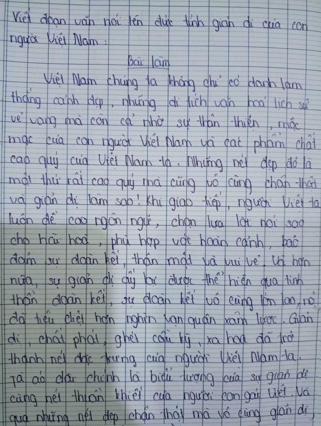 Từ nội dung của đoạn trích trên hãy viết một đoạn văn ngắn 8 đến 10 dòng nói lên đức tính giản dị của con người Việt Nam