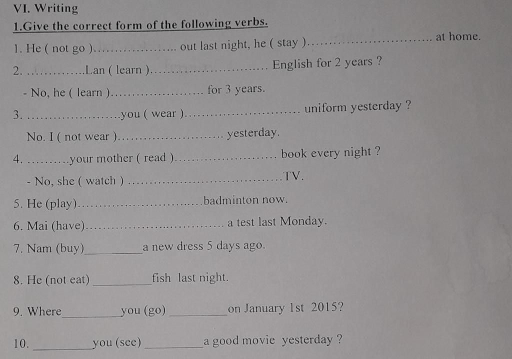 $1.$ didn't go/ stayed