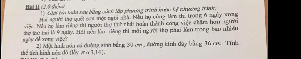 thợ thứ hai là 9 ngày. Hỏi nếu làm riêng ...