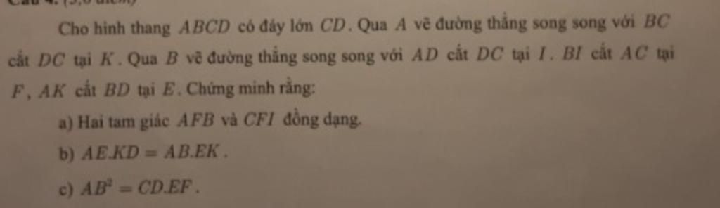 Từ `(1);(2);(3)=>{AE}/{KE}={A F}/{CF}`