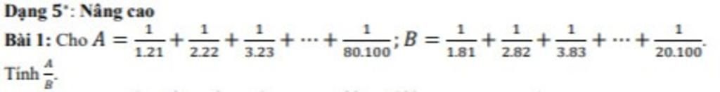 `<=>` `A/B = (1/20 . [(1/1 + 1/2 + 1/3 + ... + 1/20) - (1/81 + 1/82 + 1/83 + ... + 1/100)])/(1/80 . [(1/1 + 1/2 + 1/3 + ... + 1/20) - (1/81 + 1/82 + 1/83 + ... + 1/100)])`