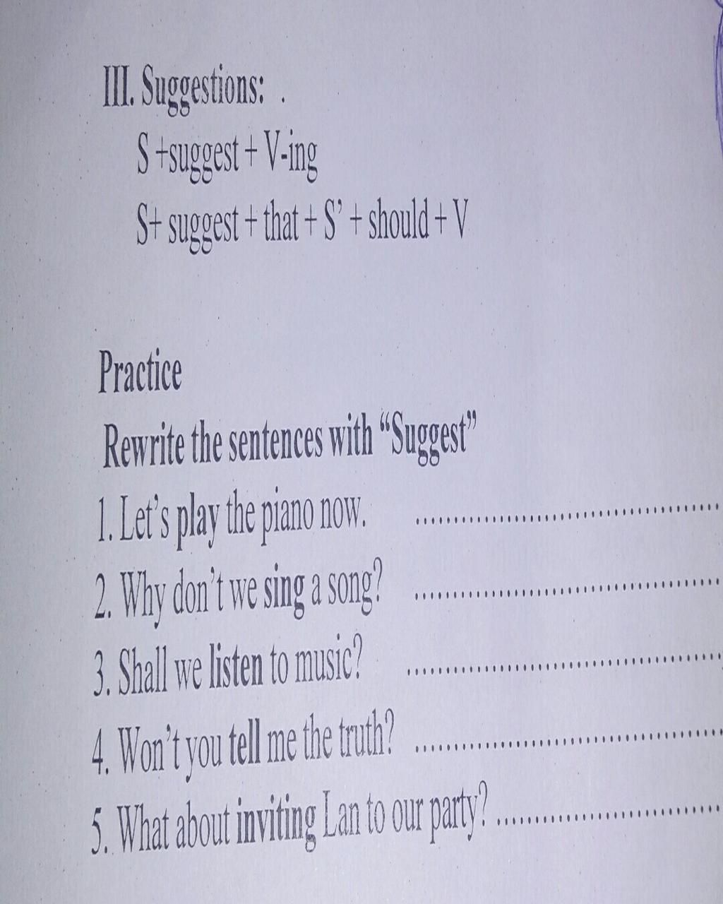 5. Cách 1: I suggest that we should invite Lan to our party.