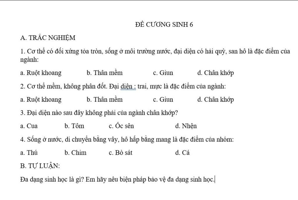 2. Cơ thể thân mềm, không phân đốt là Ngành thân mềm--2.B