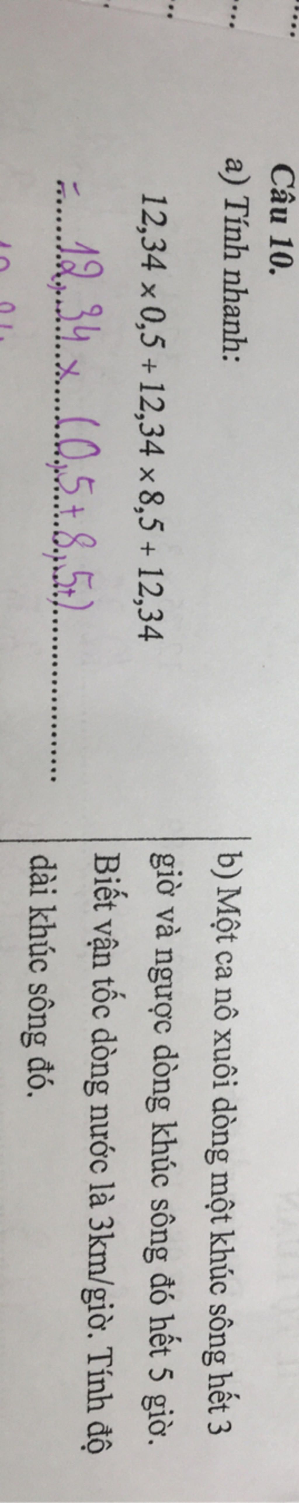 b) Một ca nô xuôi dòng một khúc sông hết 3