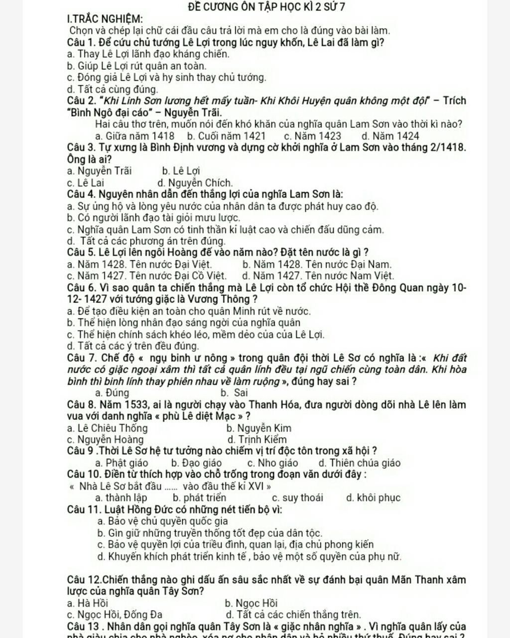 `=>` Chế độ $«$ ngụ binh ư nông a trong quân đội thời Lê Sơ có nghĩa là $:$ Khi đất nước có giặc ngoại xâm thì tất cả quân lính đều tại ngũ chiến cùng toàn dân `.` Khi hòa bình thì binh lính thay phiên nhau về làm ruộng $»$