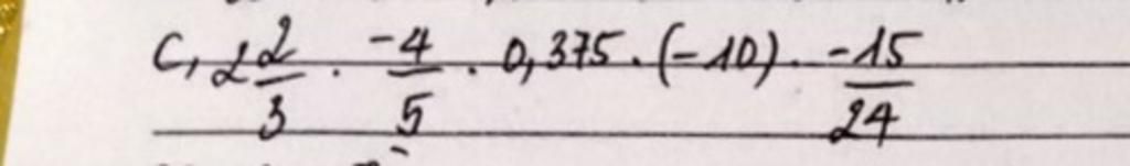 `c)` `2 2/3. (-4)/5 .0,375.(-10). (-15)/24`