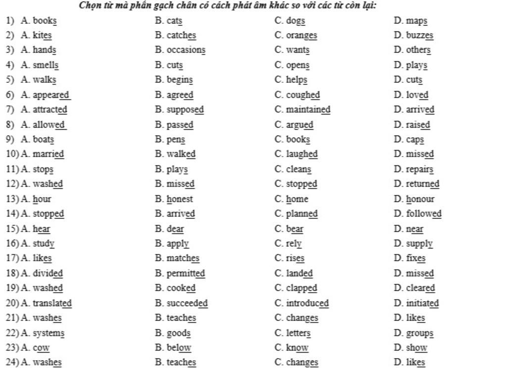 (mk có ghi thêm cả cách phát âm ed, es/s )
