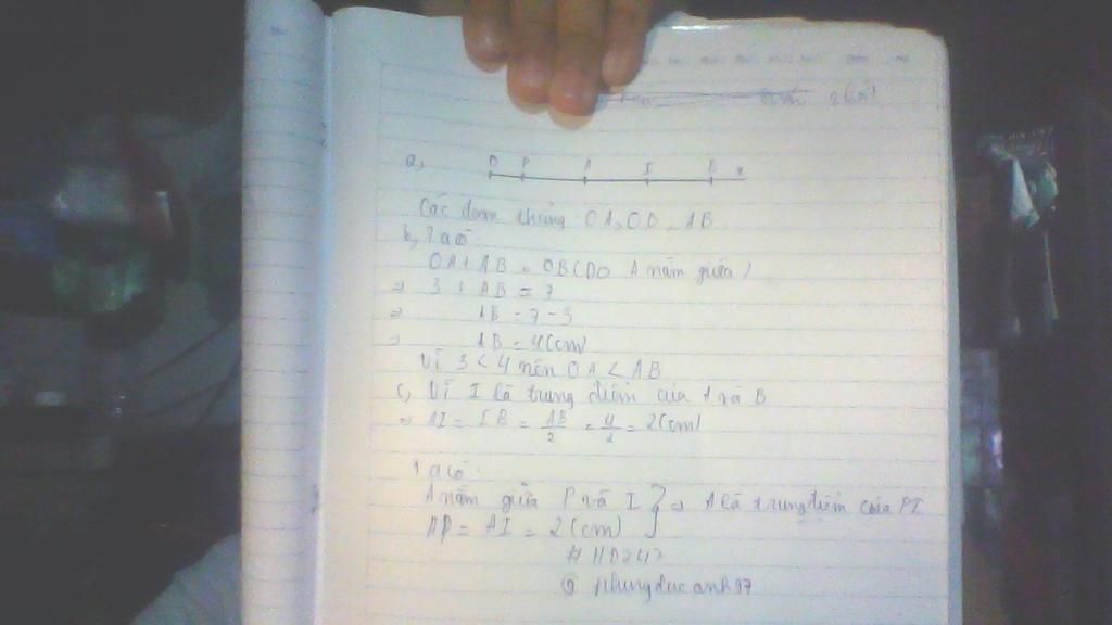 c) gọi I là trùng điểm của AB . TRên tia đối của AX lấy điểm P sao cho AP =2cm điểm Acó phải là trung điểm của đoạn thẳng PI không ? vì sao ?