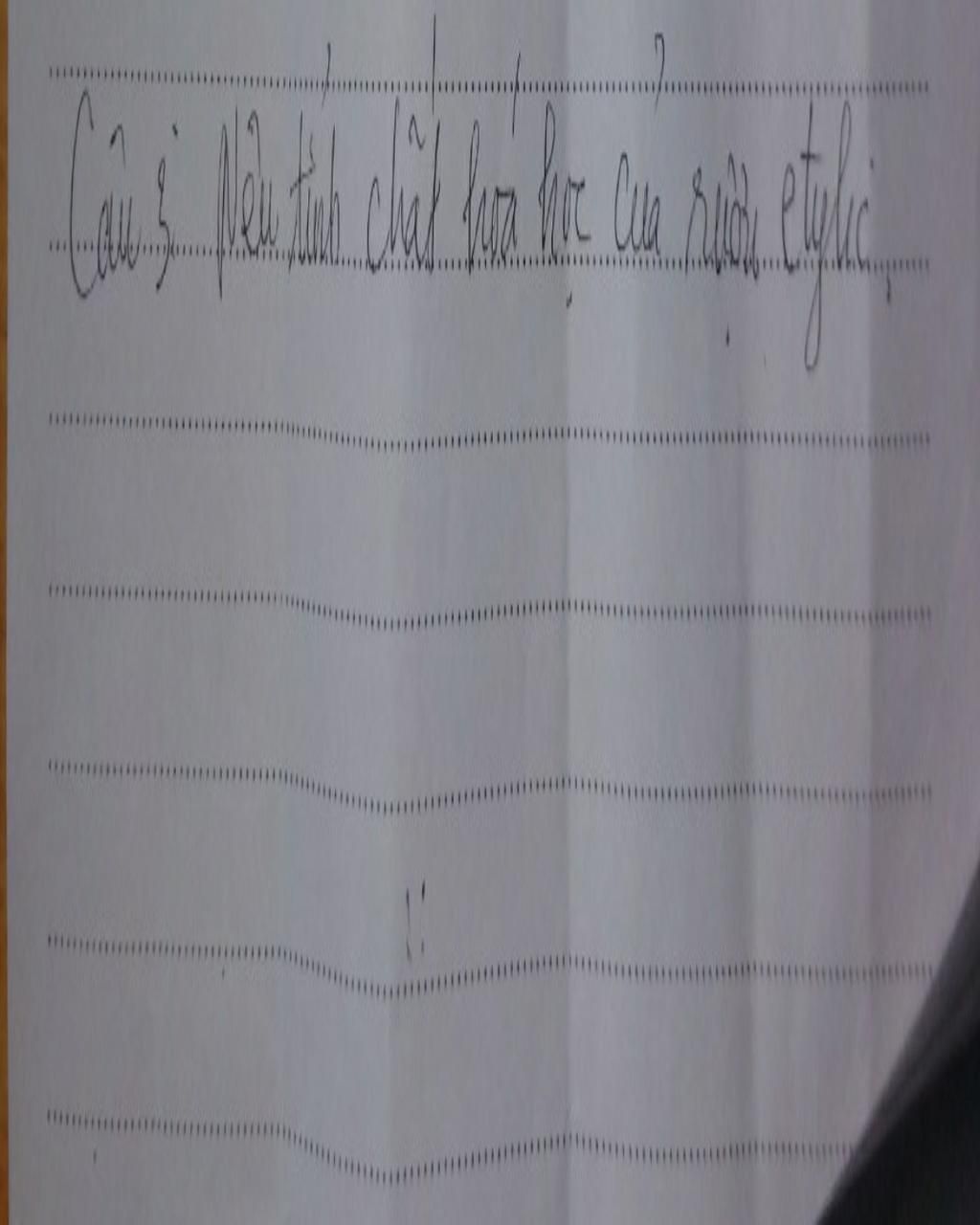 + Tác dụng được với acid acetic với xúc tác $H_2SO_4$ đặc và nhiệt độ $140^o$ tạo thành este và nước. Phản ứng trên được gọi là phản ứng este hóa.