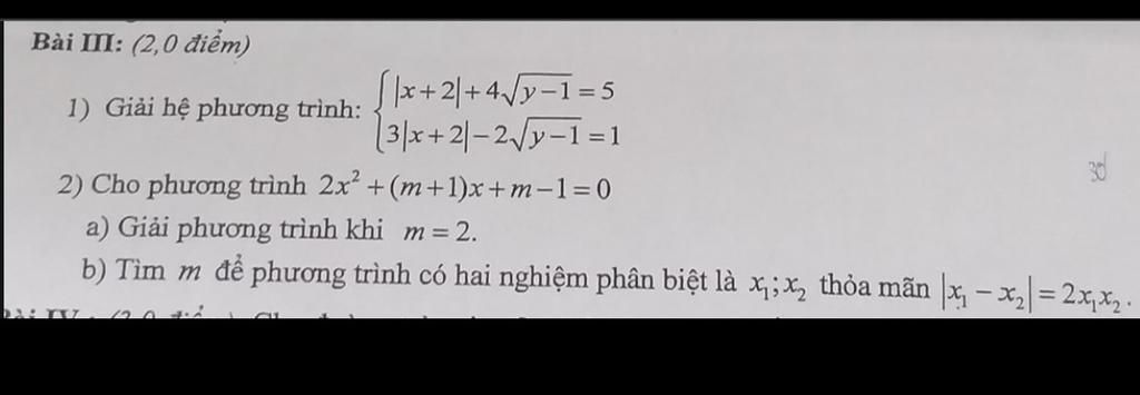 b, Theo Vi-ét: $x_1+x_2=\dfrac{-m-1}{2};x_1x_2=\dfrac{m-1}{2}$