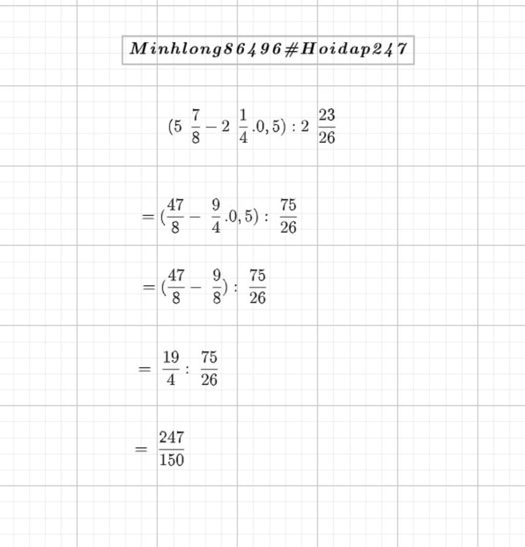 `( 5 7/8 - 2 1/4 . 0,5): 2 23/26`