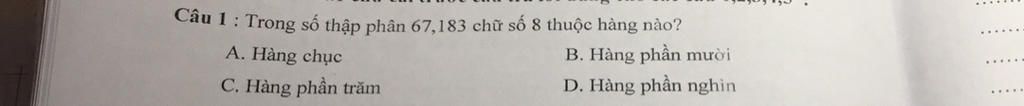 số 3 thuộc hàng phần nghìn vậy số 8 thuộc hàng phần trăm phương án `C`