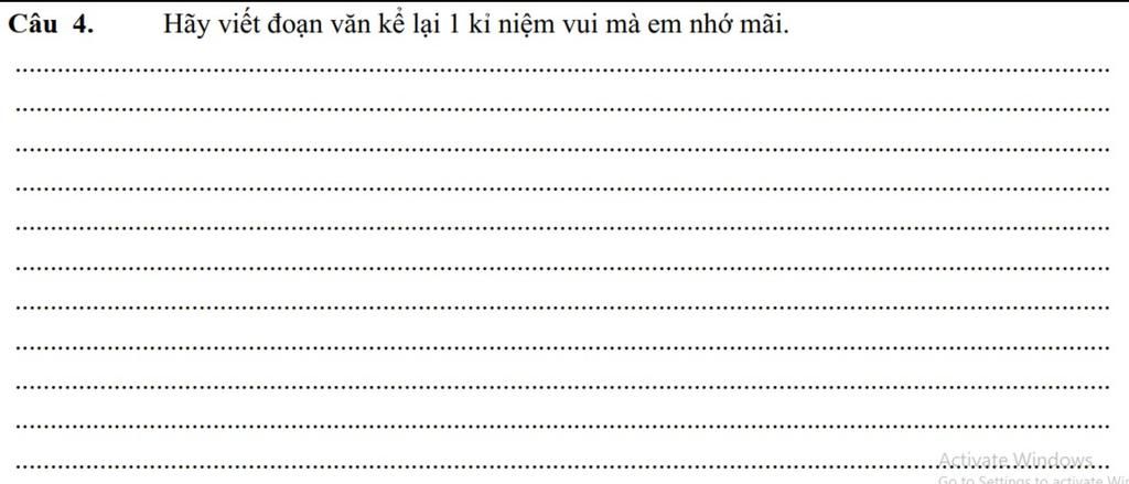 Kỉ niệm mà tôi vẫn nhớ đó là buổi khai giảng cuối cùng của năm học cấp một. Một buổi lễ thật ý nghĩa đối với một học sinh. Tôi còn nhớ hôm đó là một ngày cuối thu. Bầu trời trong xanh, cao thẳm. Tôi thức dậy từ rất sớm để chuẩn bị mọi thứ. Bảy giờ kém mười lăm phút, mẹ đưa tôi đến trường.