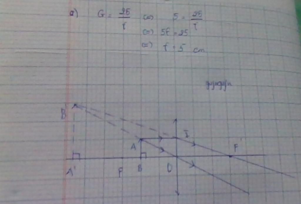 \(G = \dfrac{{25}}{f} = \dfrac{{25}}{5} = 5\)