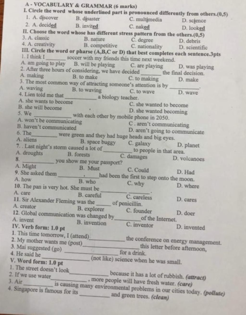 L. Circle the word whose underlined part is pronounced differently from others.(0,5)