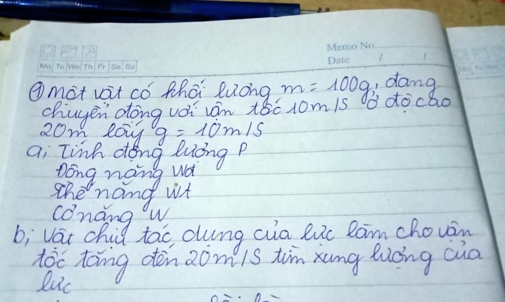 Ta có công thức tính động lượng `p=m.v = 01,.10= 1 kg.m`/`s`