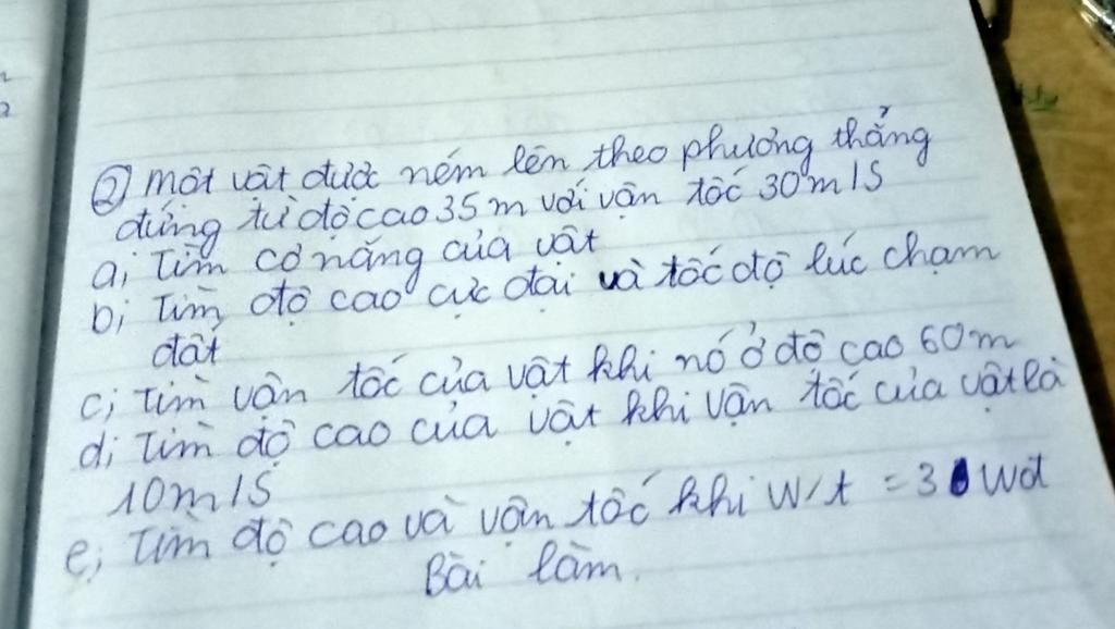 Ta có `W=W_t + W_đ= m.g.z + 1/2 .m.v^2= 35.10.m + 1/2 .m.30^2 = 800.m`