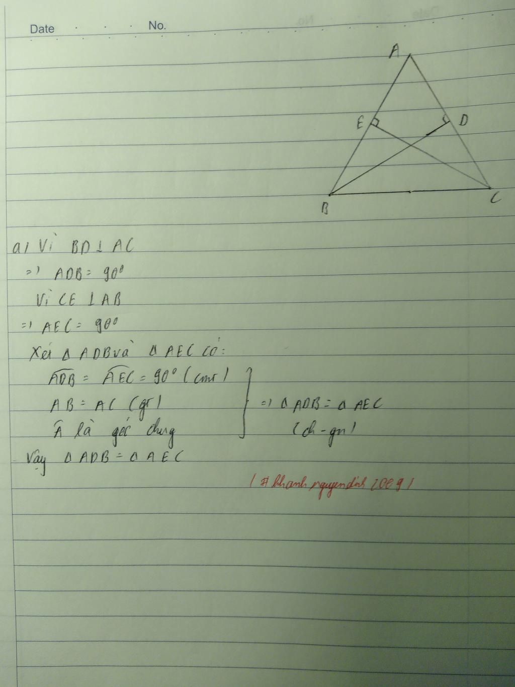 Xét $\triangle $ADB và $\triangle$ AEC,có