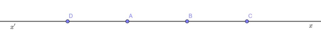 $c)$ Điểm $B$ nằm giữa hai điểm $A$ và $C, AB=BC$