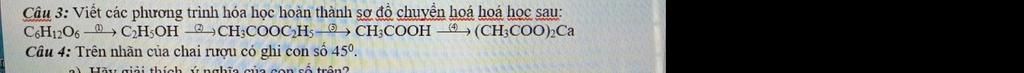 `(1)` `C_6H_12O_6` $\xrightarrow[men rượu]{30-35^{o}C}$ `2CO_2+2C_2H_5OH`