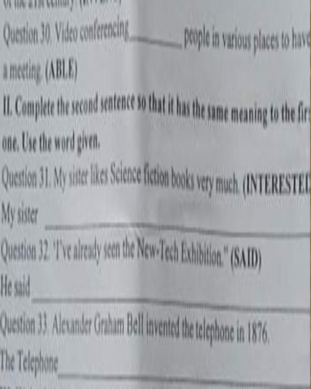 30. My sister interested in Science fiction books very much (interested in: quan tâm)33. The telephone was invented by Alexander Graham Bell in 1876 (câu bị động thì QKĐ)